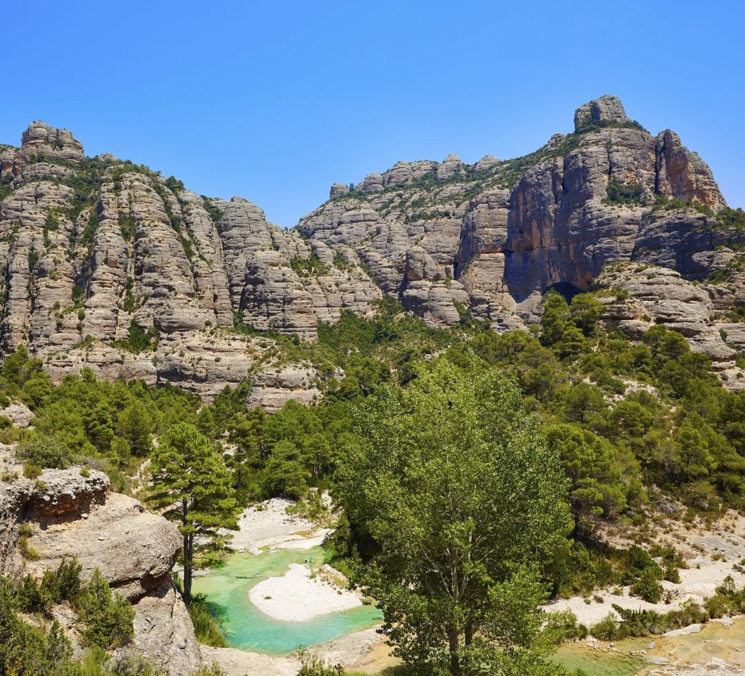 Per unir aquests dos punts, Arnes i Beseit, ens endinsarem de ple en el Parc Natural dels Ports, un massís que sempre ens sorprèn. Primer seguim el curs del riu d’Algars i després, pel coll d’en Selma, anem a cercar l’Ulldemó, que és el riu que passa per Beseit. Per tant, si el seguim, hi anirem a petar sense pèrdua.